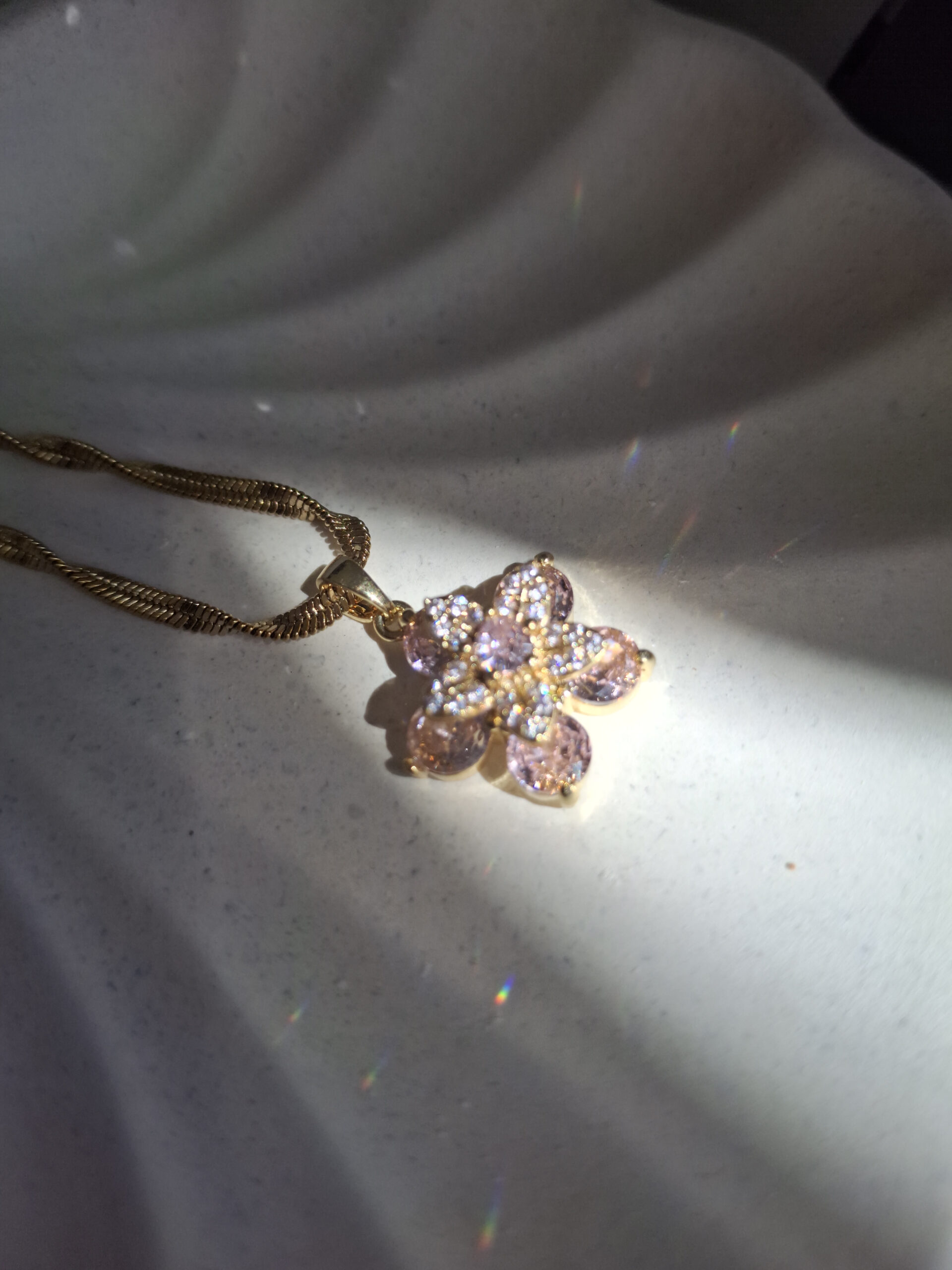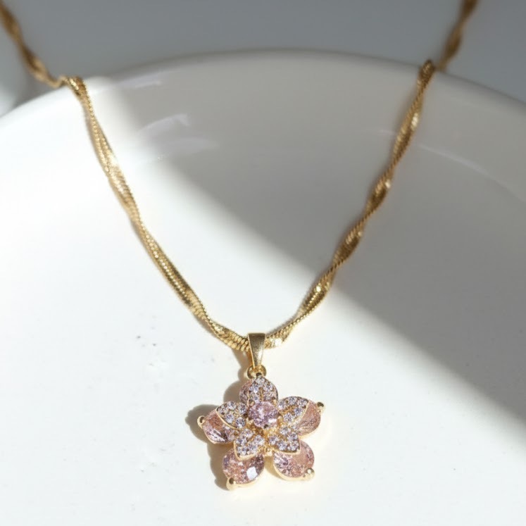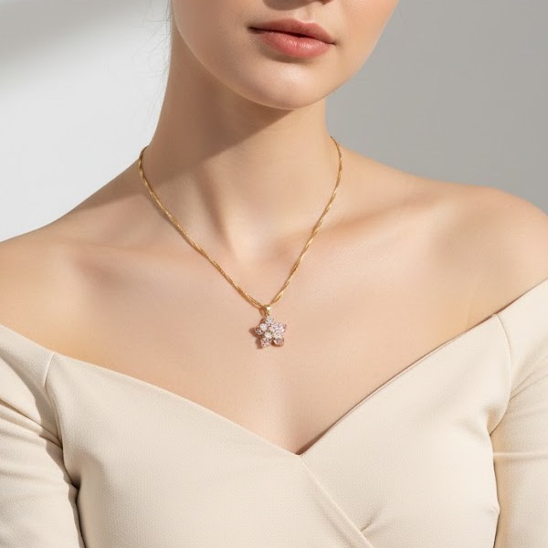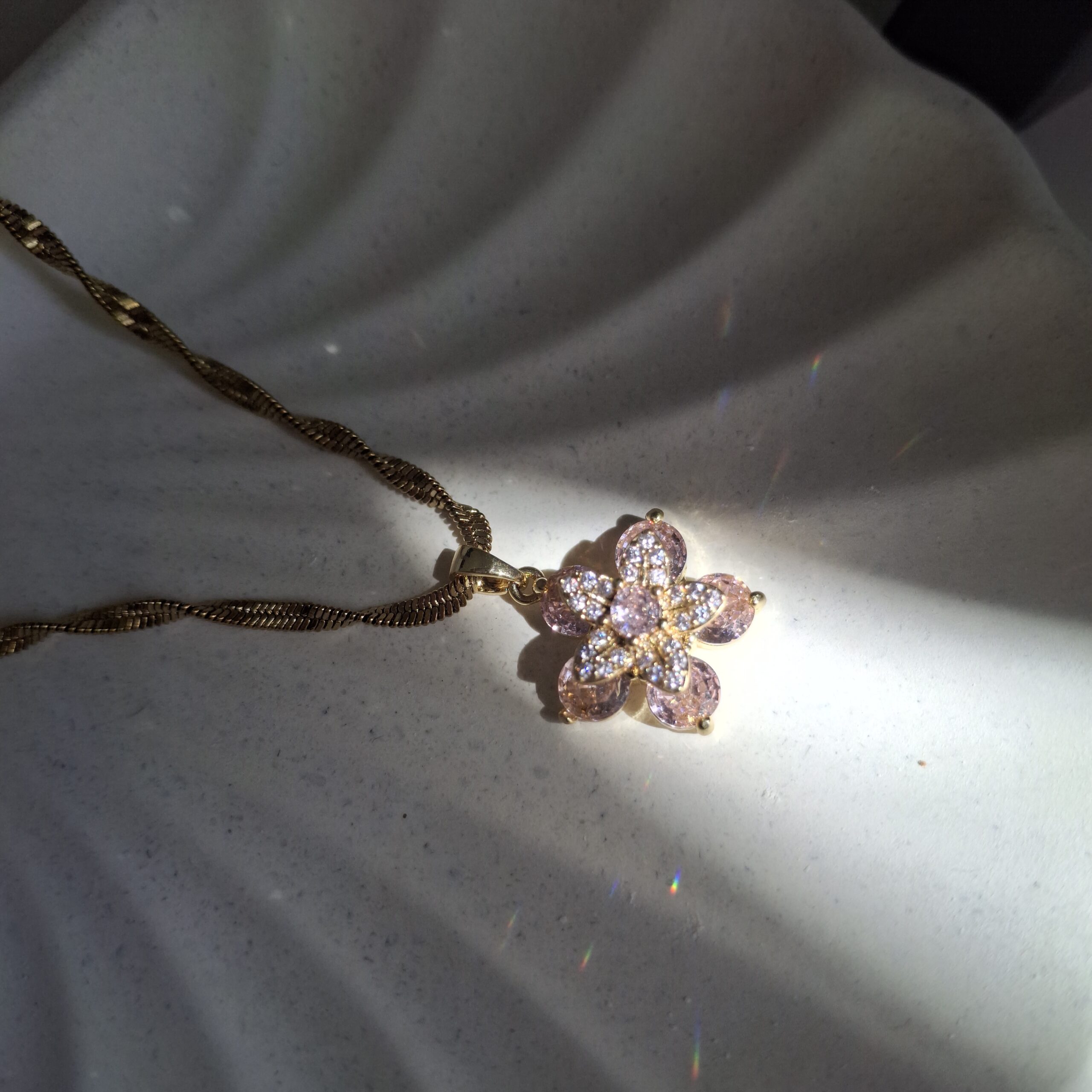 Este collar minimalista giratorio combina acero inoxidable y circonitas para un uso duradero e hipoalergénico. Diseñado para mujeres, su colgante giratorio de flor de circonita ofrece un look distintivo y moderno, ideal para compromisos, aniversarios, bodas o regalos.
